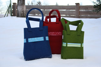 Einen praktischen Shopper für jeden Tag. Damit können Sie zum Einkaufen gehen und es passt alles rein, was frau tagsüber so braucht. Oder eine schicke Henkeltasche zum Dirndl - mit passendem Stoff gefüttert und filigranen Henkeln. Da passt dann auch das Strickjackerl mit rein...