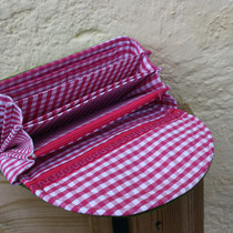 Die Portemonnaies gibt es in zwei Varianten. Ein kleines Geldtascherl im Format ca. 8x14 cm, um das Wichtigste dabei zu haben. Mit passendem Stoff gefüttert, mit Borten verziert und wahlweise mit Druckknopf oder Steckverschluss gibt es sie ab Euro 16,-.