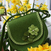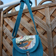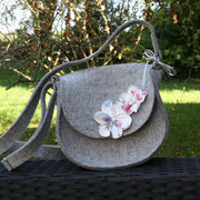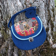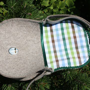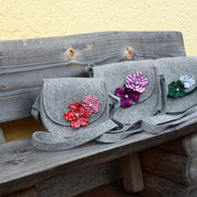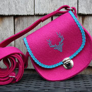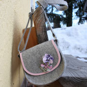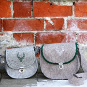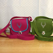 Die Umhängetasche gibt es in zwei Größen. In der kleinen Variante ca. 16x16 cm und in der großen ca. 20x20 cm. Die Taschen haben eine Umschlagklappe und werden wahlweise mit Druckknopf oder Steckverschluss geschlossen. Der Schultergurt ist stufenlos verstellbar. Zu haben ist die Umhängetasche - je nach Ausführung - ab € 35,-.